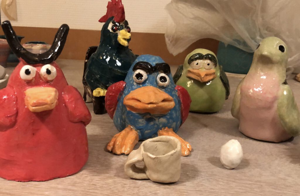 Je houdt er een prachtig werkstuk aan over. Dat is na ca. 3-4 weken klaar, en dat is het tweede feestje: de gebakken werkstukken ophalen!