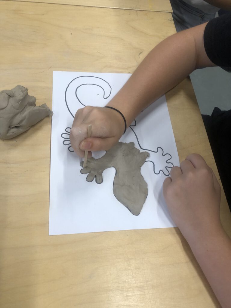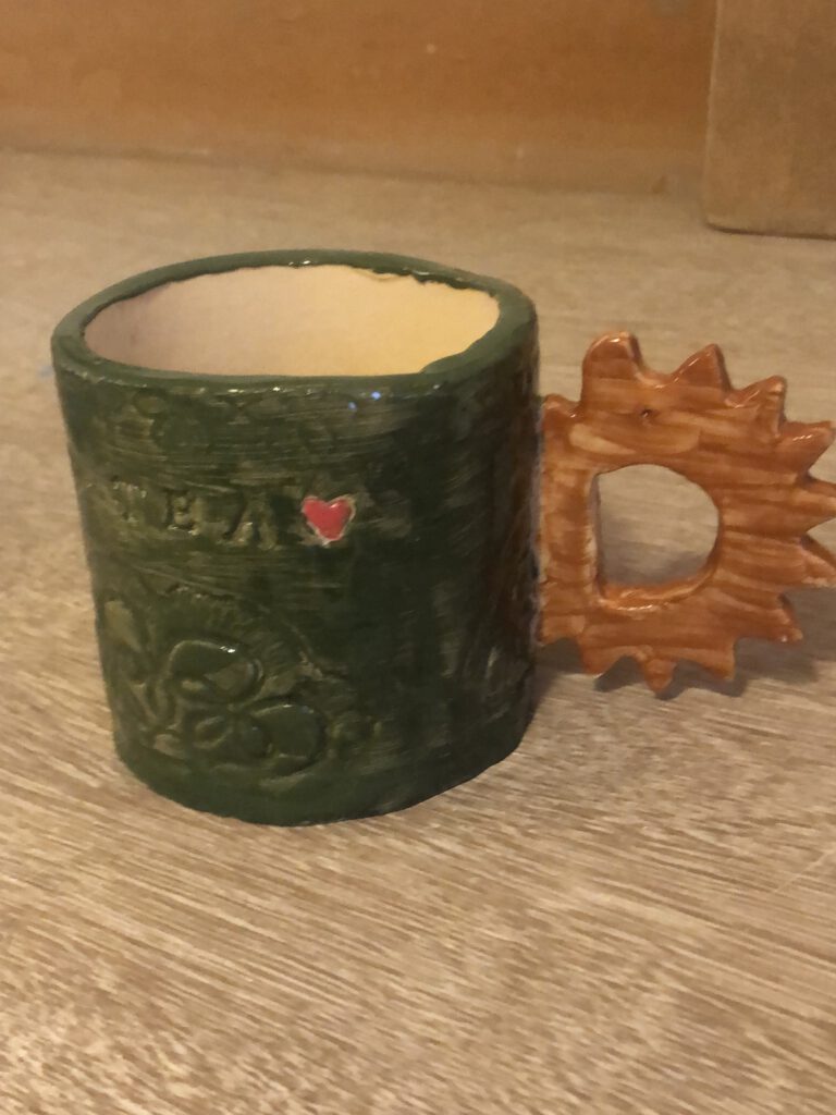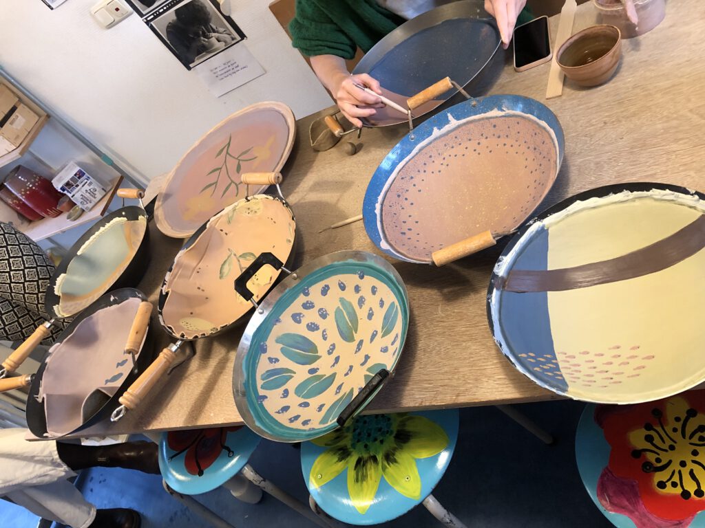 Je maakt iets, en daarna beschilder je het naar eigen inzicht met mooie kleuren engobe (kleislib).